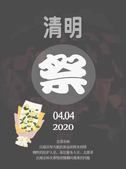 2020年4月4日举行全国性哀悼活动。在此期间,全国和驻外使领馆下半旗志哀,全国停止公共娱乐活动。4月4日10时起,全国人民默哀3分钟,汽车、火车、舰船鸣笛,防空警报鸣响。