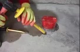第二步,开槽处理:用锤子、凿子在管根周边剔宽20mm深10mm的凹槽。
