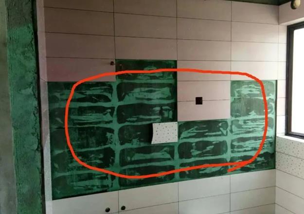 别的地方不掉砖,就卫生间做了防水,掉砖了,师傅和业主都认为是防水材料质量有问题。其实这真不是防水的错!在防水施工时,我们一直建议大家“墙刚地柔”,但在施工时,很多人忽视了这一点,一种材料通刷,在墙面也使用柔性防水。由于柔性防水涂膜具有避水性,所以贴不住瓷砖。如果想在柔性防水层上贴砖,可以先在防水层上做一层拉毛处理,增加基面的粗糙程度,提升瓷砖粘结力。