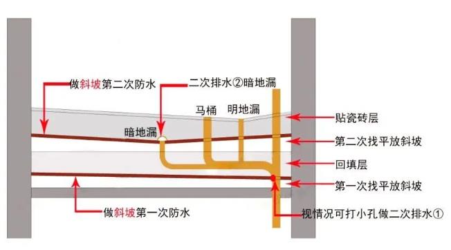 因为卫生间地面的防水层,并不能确保它一定能够防住水,一旦卫生间地面防水层漏水,那么这些积水就会流入下沉层,如果下沉层没有做二次排水的话,那么这些积水一直积累,容易滋生细菌,时间长了,还会影响卫生间的建筑结构。做了二次排水之后,这些积水能够及时地排走,避免了上述这些负面影响。