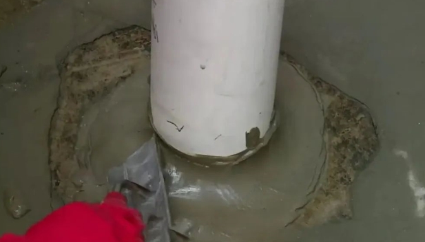 2.施工前应该进行喷水润湿,然后再进行抹弧处理。使用专业的抹弧工具,在阴角、管根部位将堵漏王抹成圆弧状。