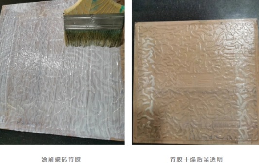 如果未干透就铺贴,背胶里面的水分就会长期封闭在瓷砖与粘接材料之间,未干掉的背胶存于碱性环境条件下就会与粘接料里面的水泥发生水化反应而分解,反而会影响瓷砖与粘接材料之间的粘接性能。