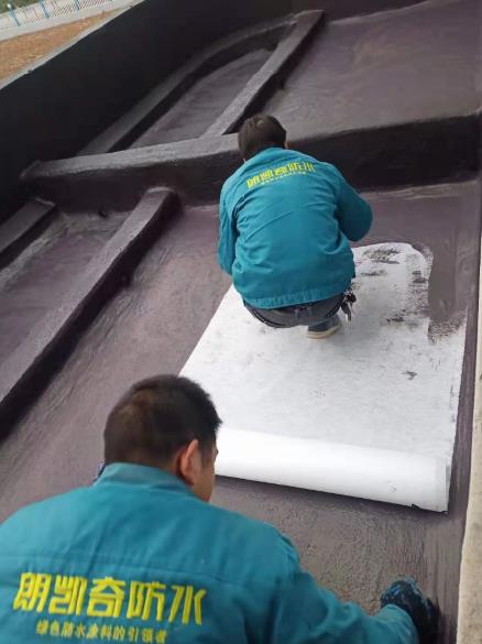 涂膜中夹铺胎体增强材料时,宜边涂边铺胎体。铺设时应将胎体材料刮平排除气泡,此时既不宜拉伸过紧,但也不得过松,能使上下涂层粘结牢固为度。另外,在施工时应将涂料浸透胎体,覆盖完全,不得发生胎体外露现象。朗凯奇防水