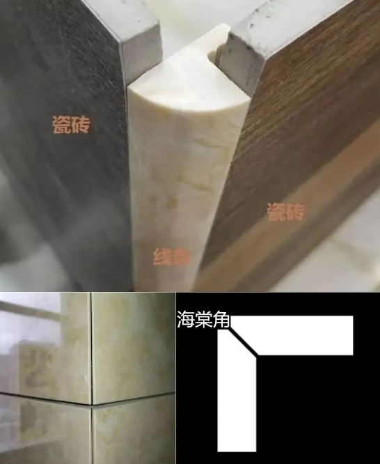阳角,是指墙面上凸出来的墙角,针对这些阳角位,一般需要考虑2个问题,一方面要保护阳角、避免崩角;一方面要避免角尖太锋,至于怎么保护阳角,常见的做法有阳角条与海棠角。阳角条比较方便,贴砖时直接在阳角位置植入阳角保护条即可。海棠角相对复杂一点,需要在贴砖前,把瓷砖的底坯按45度磨掉一些,然后把两块45度斜角的砖拼在一起,另外阳角位留出一个小缺角做美缝,也能起到很好的保护作用。