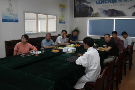 接下来,由朗凯奇科研中心主任张军向几位领导重点介绍了朗凯奇自愈合防水系统材料,并向大家展示朗凯奇自愈合防水系统在各大项目工程的成功应用情况,通过实际案例进一步论证自愈合防水系统的可靠性和比较优势。