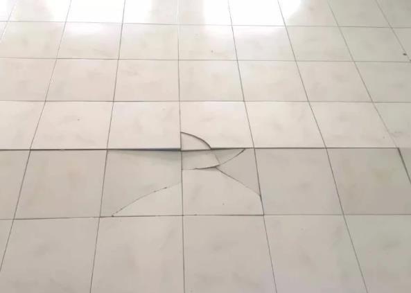 现象:多处瓷砖开裂,开裂纹理方向不规则。