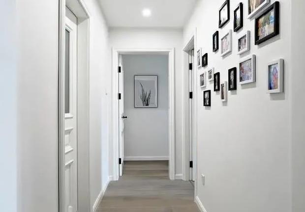 想象一下,如果走廊是一面大白墙,是不是十分单调,不妨试试将过道打造成照片墙,在墙上挂上旅途中拍的,或者家人喜欢的照片,让家庭生活氛围更加温馨。
